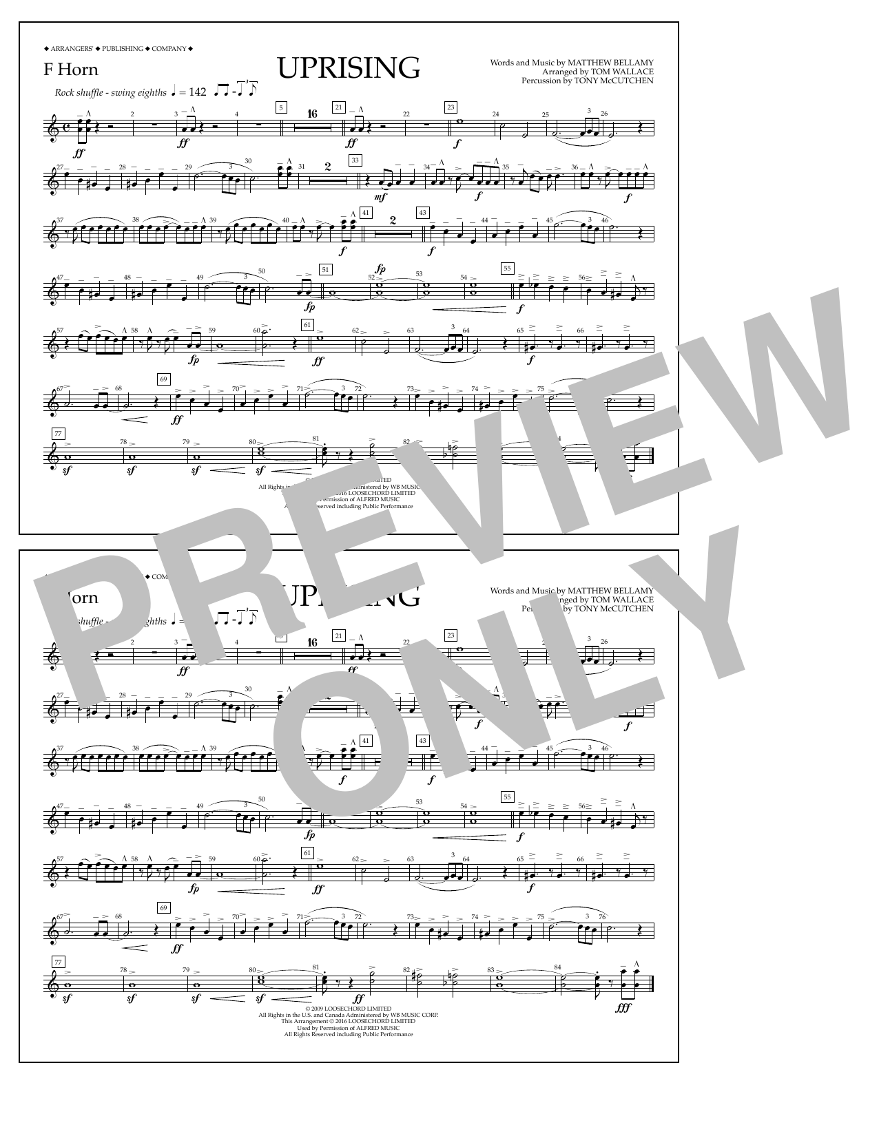 Download or print Tom Wallace Uprising - F Horn sheet music, chords and digital score arranged for Marching Band. This Pop score includes 1 page(s).