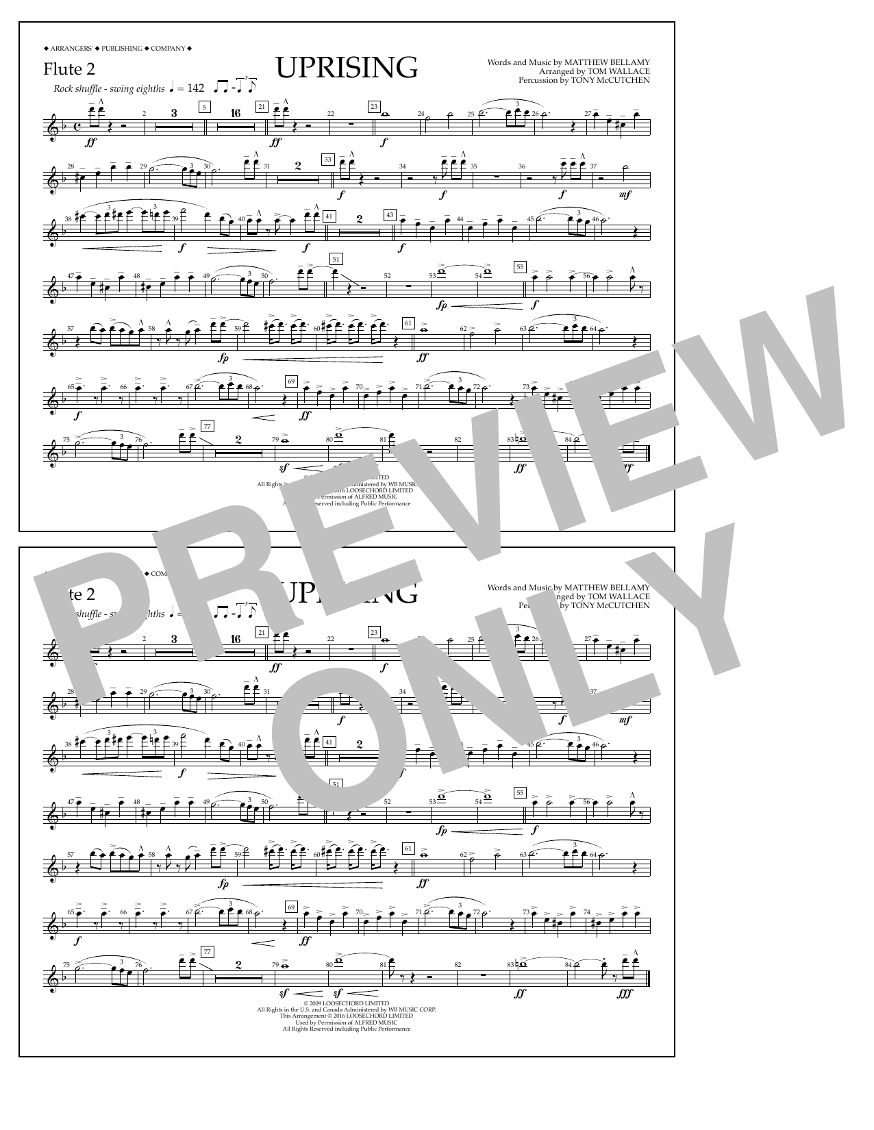 Download or print Tom Wallace Uprising - Flute 2 sheet music, chords and digital score arranged for Marching Band. This Pop score includes 1 page(s).