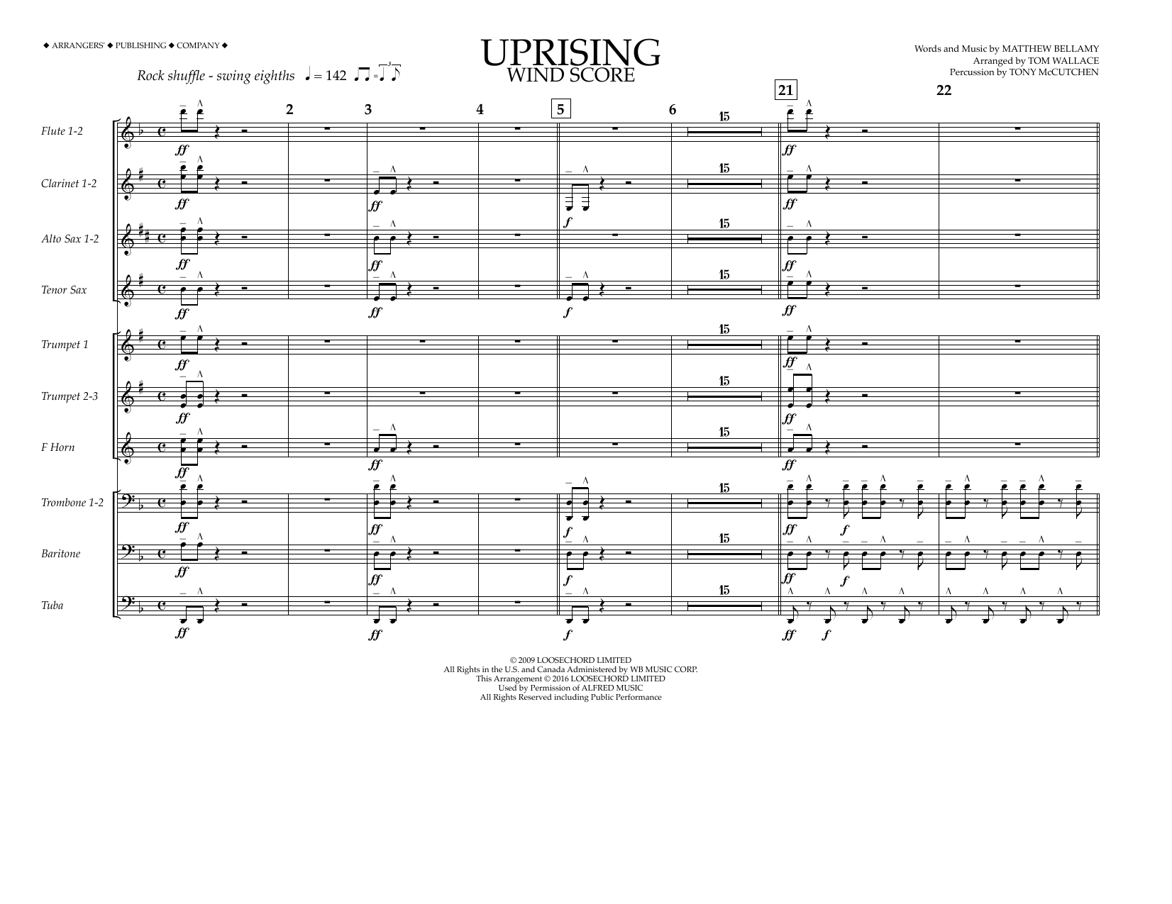 Download or print Tom Wallace Uprising - Wind Score sheet music, chords and digital score arranged for Marching Band. This Pop score includes 8 page(s).