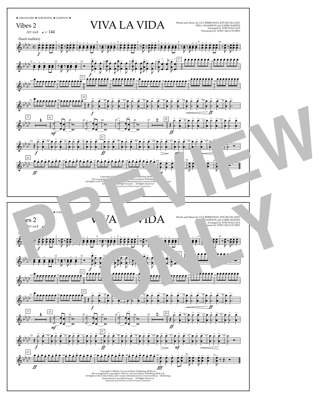 Download or print Tom Wallace Viva La Vida - Vibes 2 sheet music, chords and digital score arranged for Marching Band. This Pop score includes 1 page(s).
