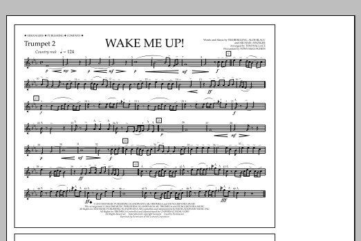 Download or print Tom Wallace Wake Me Up! - Trumpet 2 sheet music, chords and digital score arranged for Marching Band. This Pop score includes 1 page(s).