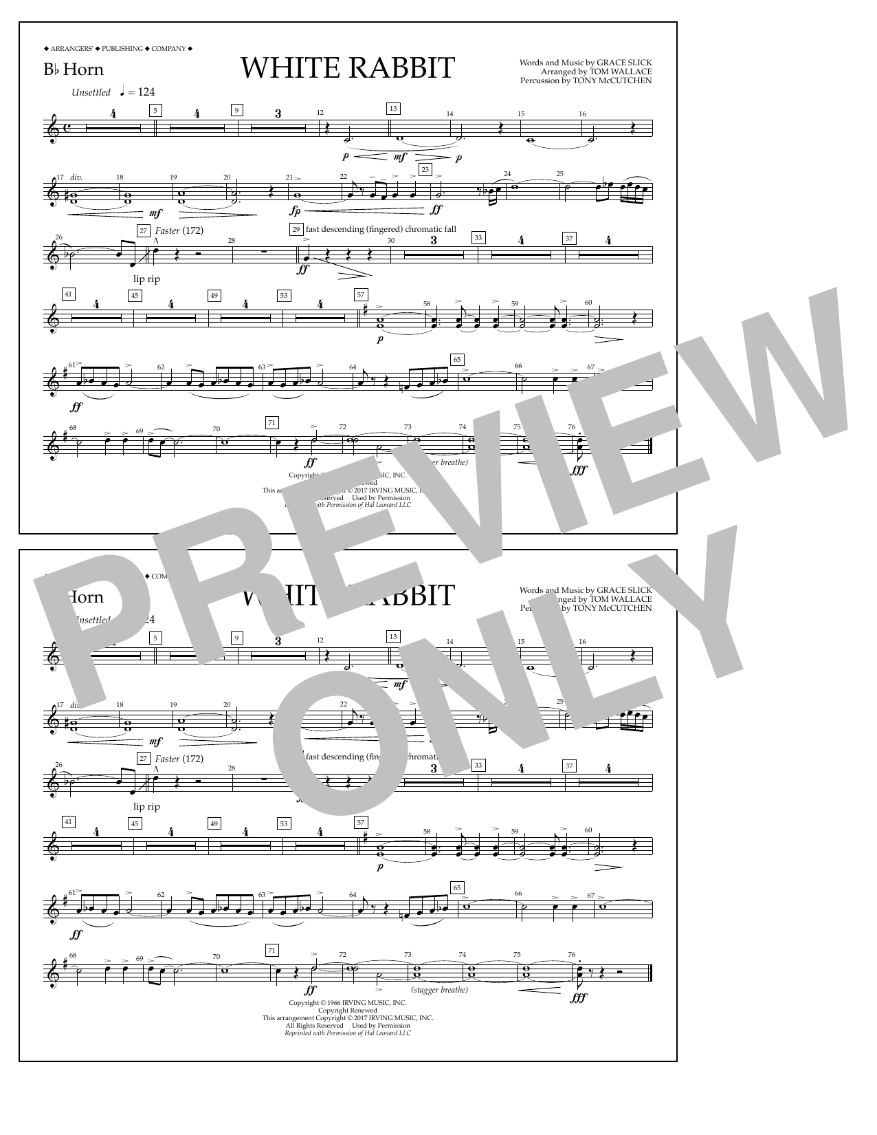 Download or print Tom Wallace White Rabbit - Bb Horn sheet music, chords and digital score arranged for Marching Band. This Pop score includes 1 page(s).
