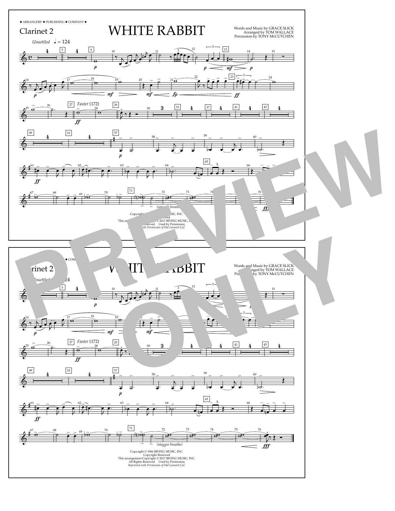 Download or print Tom Wallace White Rabbit - Clarinet 2 sheet music, chords and digital score arranged for Marching Band. This Pop score includes 1 page(s).