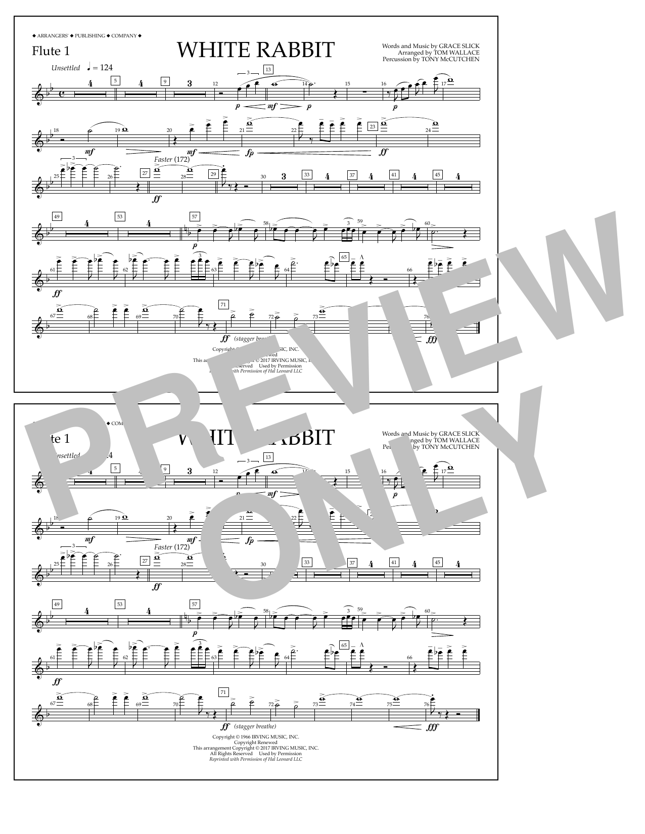 Download or print Tom Wallace White Rabbit - Flute 1 sheet music, chords and digital score arranged for Marching Band. This Pop score includes 1 page(s).