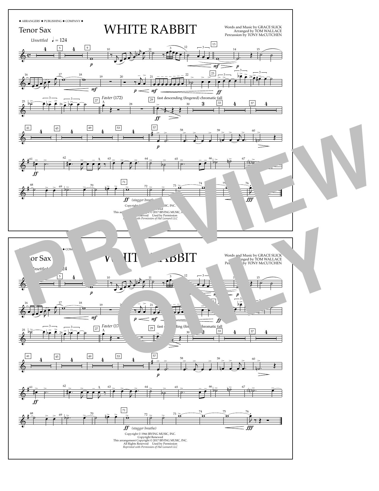Download or print Tom Wallace White Rabbit - Tenor Sax sheet music, chords and digital score arranged for Marching Band. This Pop score includes 1 page(s).