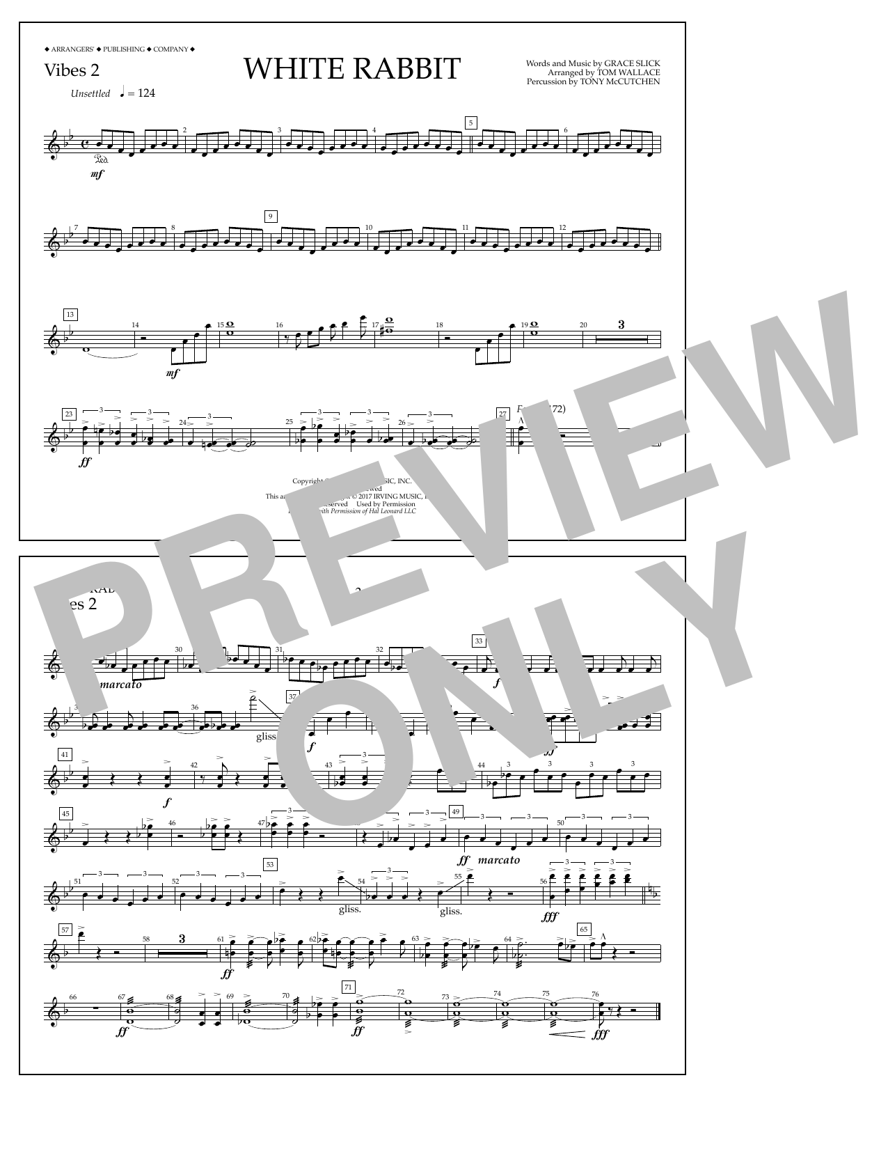 Download or print Tom Wallace White Rabbit - Vibes 2 sheet music, chords and digital score arranged for Marching Band. This Pop score includes 1 page(s).