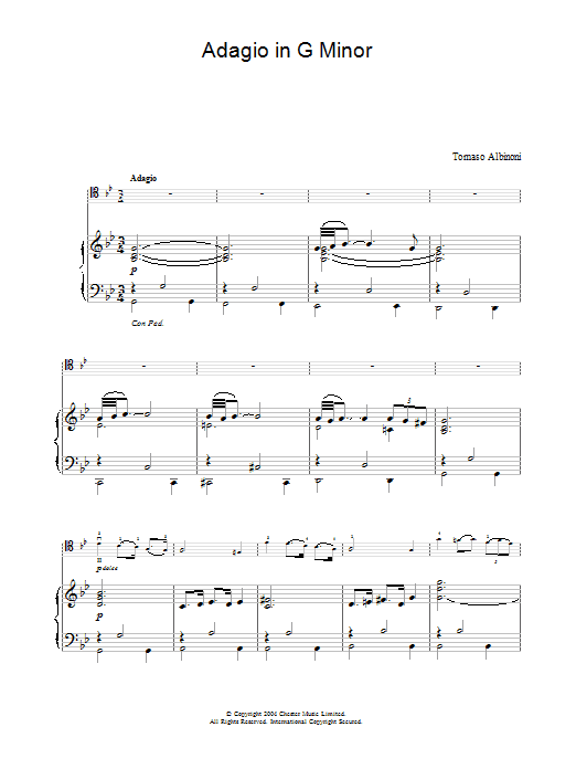 This composition is beautifuly arranged for Easy Piano includes 2 page(s). It is performed by Tomaso Albinoni. The style of the score is 'Classical'. Catalog SKU number of the notation is 1347060.