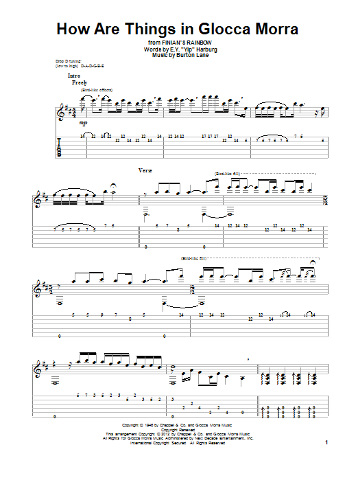 Download or print Tommy Dorsey How Are Things In Glocca Morra sheet music, chords and digital score arranged for Solo Guitar. This Jazz score includes 5 page(s).