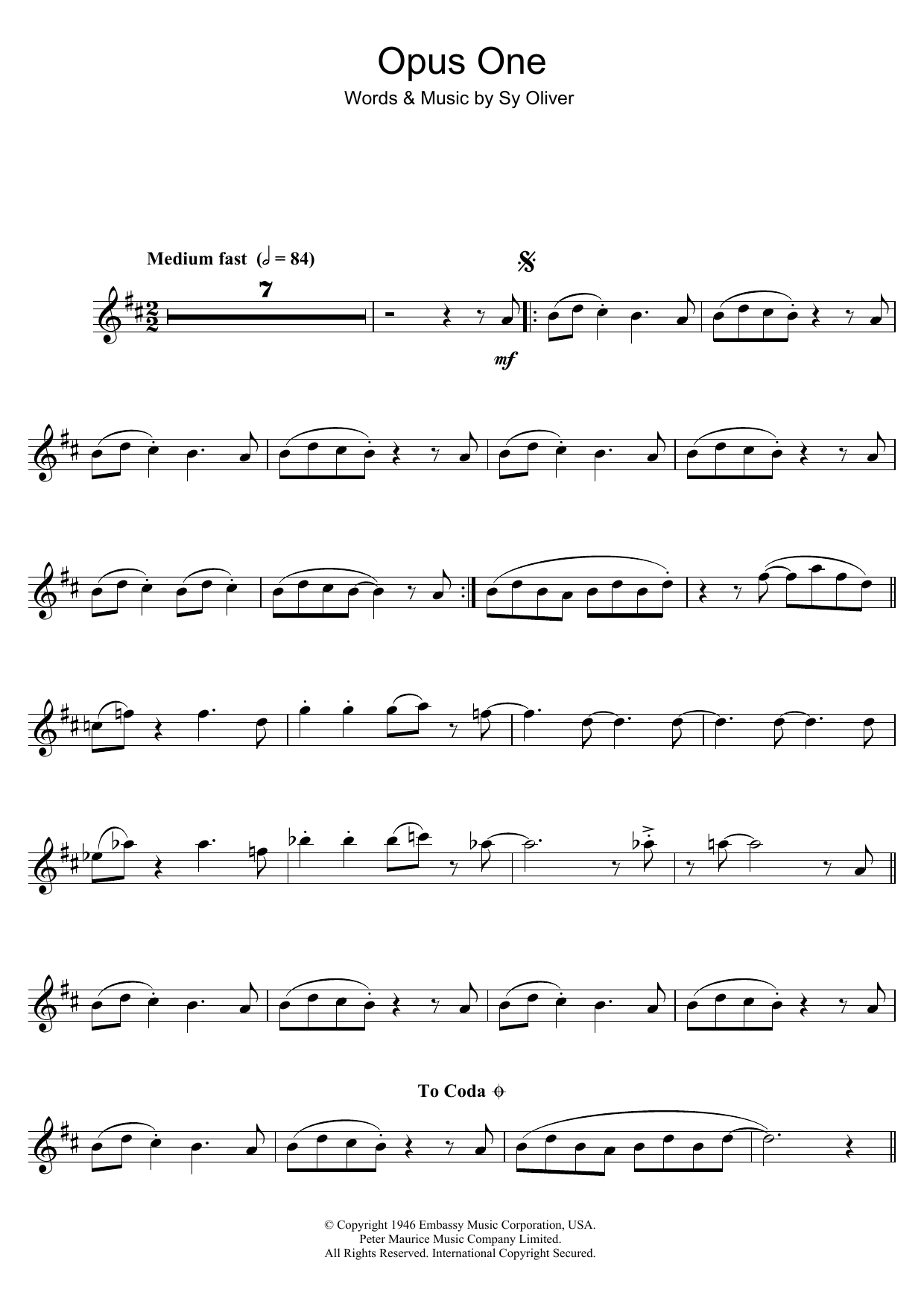 Download or print Tommy Dorsey Opus One sheet music, chords and digital score arranged for Flute Solo. This Jazz score includes 3 page(s).