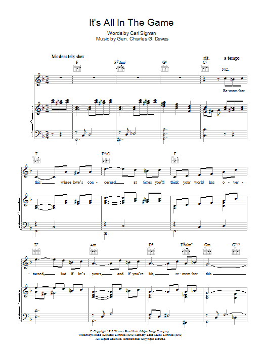 Quick facts It's All In The Game about digital sheet music