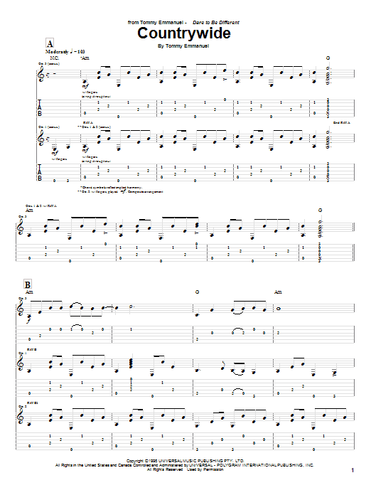 Download or print Tommy Emmanuel Countrywide sheet music, chords and digital score arranged for Guitar Tab. This Pop score includes 6 page(s).
