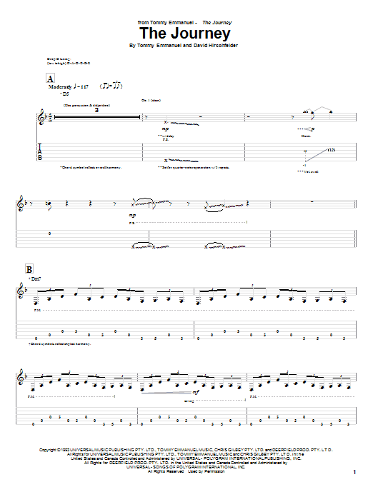 Download or print Tommy Emmanuel The Journey sheet music, chords and digital score arranged for Guitar Tab. This Jazz score includes 11 page(s).