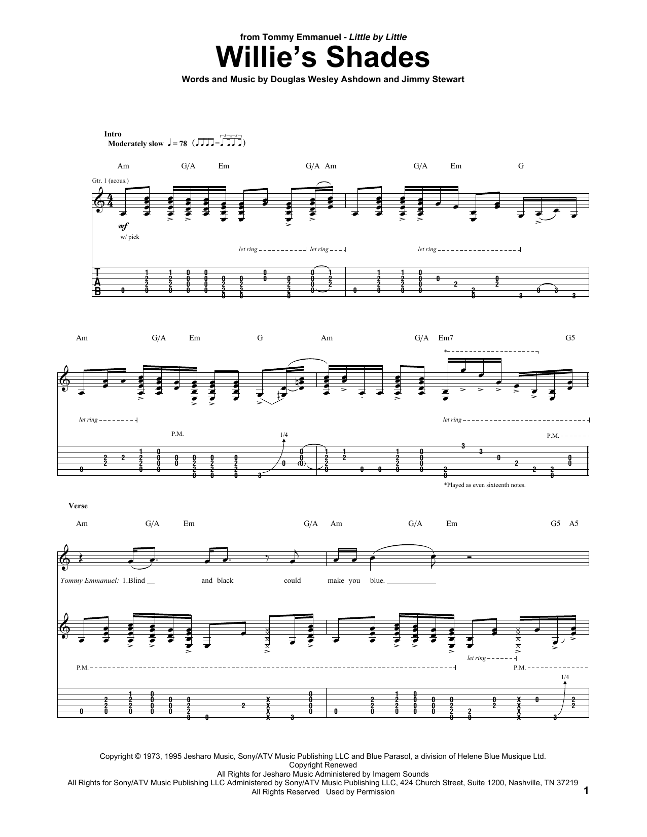 Download or print Tommy Emmanuel Willie's Shades sheet music, chords and digital score arranged for Guitar Tab. This Pop score includes 25 page(s).