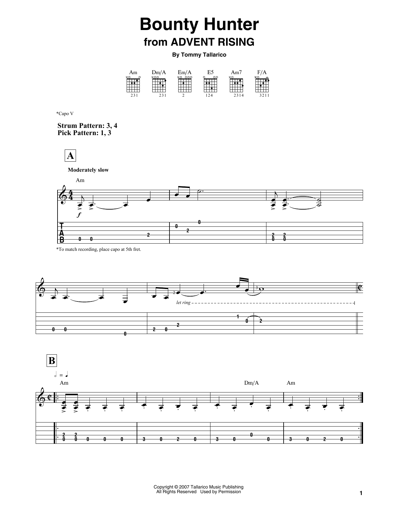 Download or print Tommy Tallarico Bounty Hunter (from Advent Rising) sheet music, chords and digital score arranged for Solo Guitar. This Video Game score includes 8 page(s).