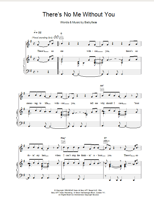 Download or print Toni Braxton There's No Me Without You sheet music, chords and digital score arranged for Piano, Vocal & Guitar Chords. This Pop score includes 5 page(s).