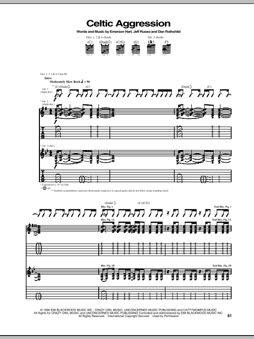 Download or print Tonic Celtic Aggression sheet music, chords and digital score arranged for Guitar Tab. This Alternative score includes 9 page(s).