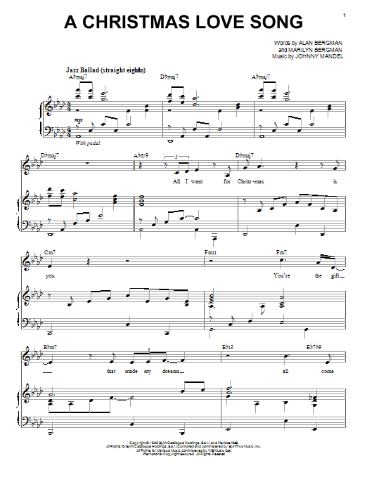 Download or print Tony Bennett A Christmas Love Song sheet music, chords and digital score arranged for Piano & Vocal. This Pop score includes 6 page(s).