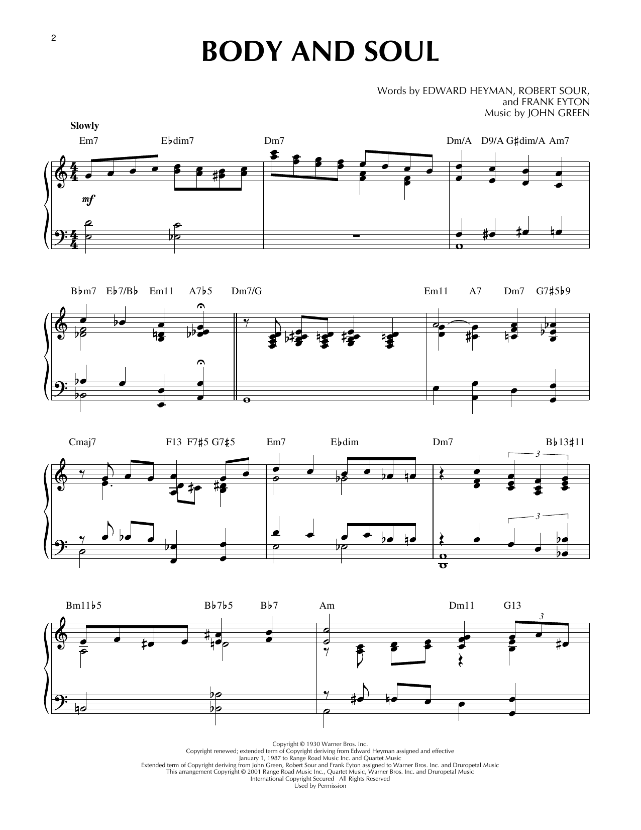 Download or print Tony Bennett & Amy Winehouse Body And Soul (arr. Brent Edstrom) [Jazz version] sheet music, chords and digital score arranged for Piano Solo. This Jazz score includes 3 page(s).