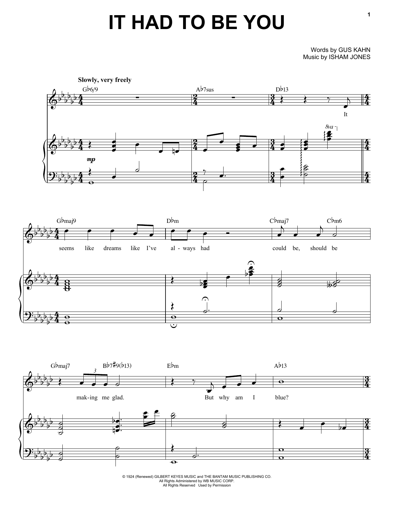 Download or print Tony Bennett It Had To Be You sheet music, chords and digital score arranged for Piano, Vocal & Guitar Chords (Right-Hand Melody). This Jazz score includes 6 page(s).