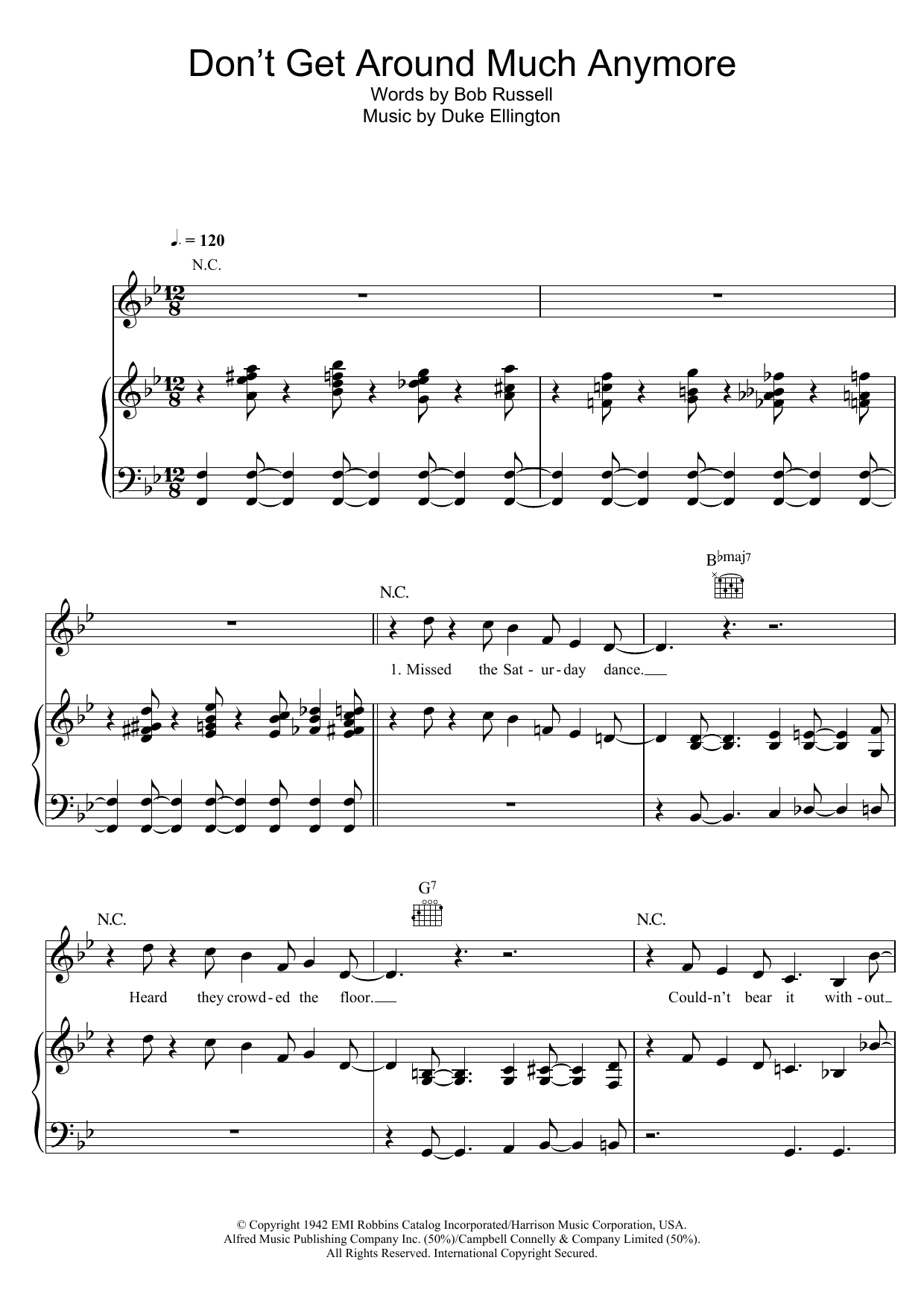 Download or print Tony Bennett & Michael Buble Don't Get Around Much Anymore sheet music, chords and digital score arranged for Piano, Vocal & Guitar Chords (Right-Hand Melody). This Jazz score includes 6 page(s).