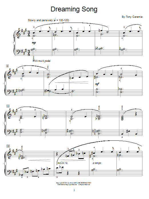 Download or print Tony Caramia Dreaming Song sheet music, chords and digital score arranged for Educational Piano. This Children score includes 2 page(s).