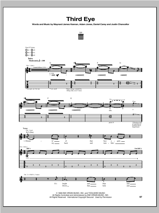 Download or print Tool Third Eye sheet music, chords and digital score arranged for Guitar Tab. This Pop score includes 20 page(s).