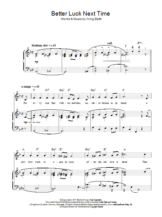 Download or print Top Hat Cast Better Luck Next Time sheet music, chords and digital score arranged for Piano, Vocal & Guitar Chords. This Musical/Show score includes 4 page(s).
