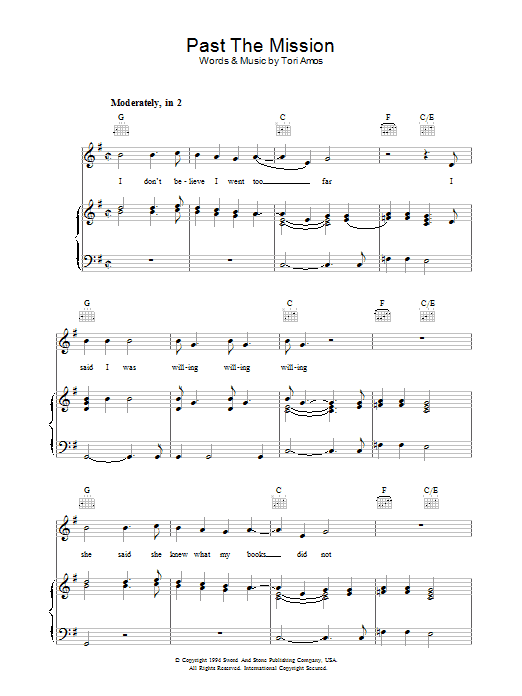 Download or print Tori Amos Past The Mission sheet music, chords and digital score arranged for Piano, Vocal & Guitar Chords. This Pop score includes 8 page(s).