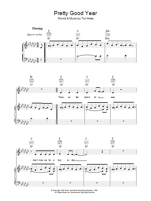 Download or print Tori Amos Pretty Good Year sheet music, chords and digital score arranged for Guitar Chords/Lyrics. This Pop score includes 2 page(s).