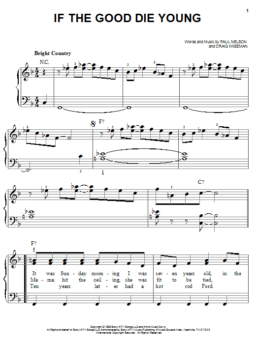 Download or print Tracy Lawrence If The Good Die Young sheet music, chords and digital score arranged for Easy Piano. This Country score includes 6 page(s).
