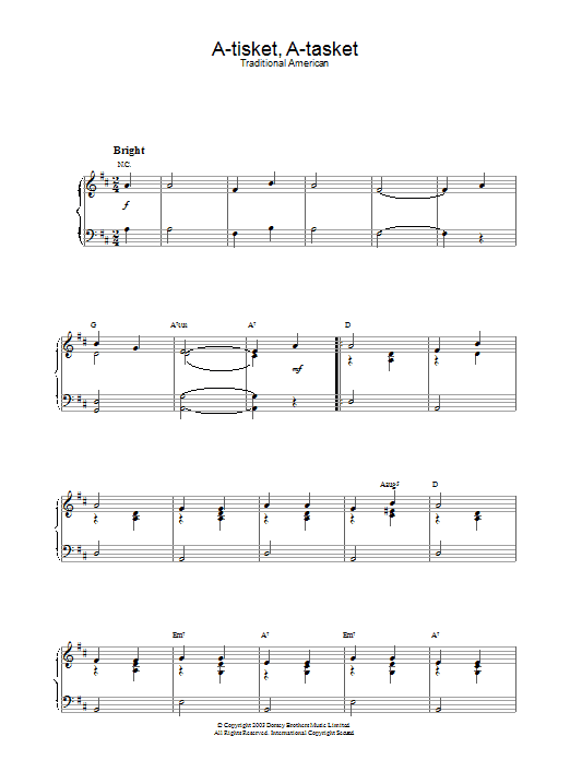 Download or print Traditional A-Tisket A-Tasket sheet music, chords and digital score arranged for Easy Lead Sheet / Fake Book. This Children score includes 1 page(s).