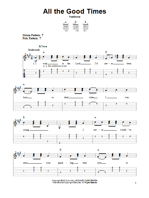 Download or print Traditional All The Good Times sheet music, chords and digital score arranged for Real Book – Melody, Lyrics & Chords. This Folk score includes 1 page(s).
