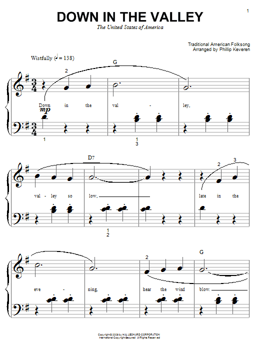 Quick facts Down In The Valley (arr. Phillip Keveren) about digital sheet music
