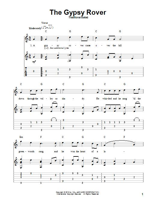 Download or print Traditional Ballad The Gypsy Rover sheet music, chords and digital score arranged for Solo Guitar. This Folk score includes 3 page(s).