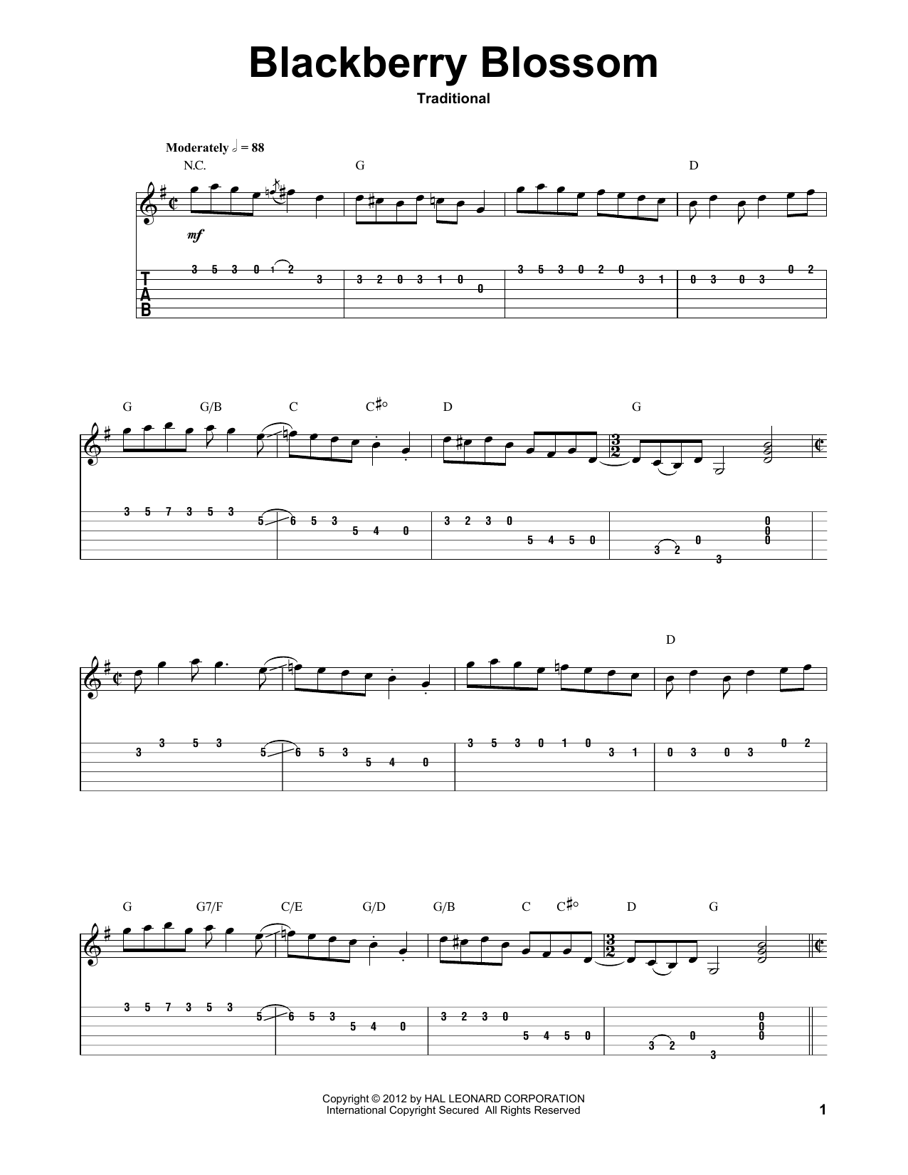 Download or print Traditional Blackberry Blossom sheet music, chords and digital score arranged for Easy Guitar Tab. This Folk score includes 3 page(s).