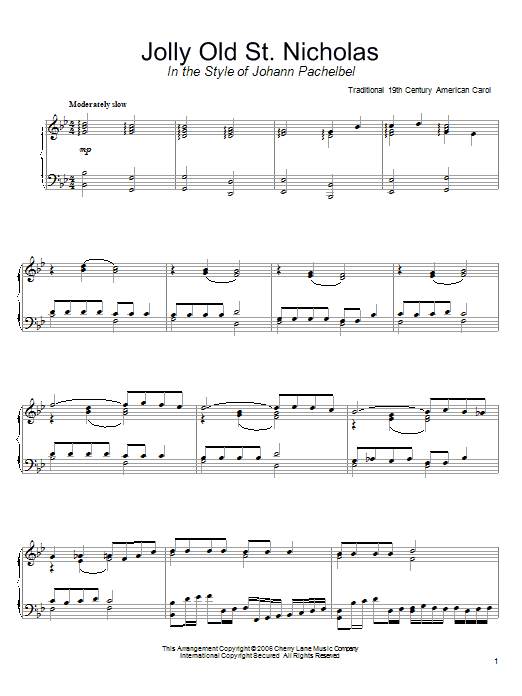 Quick facts Jolly Old St. Nicholas (in the style of Johann Pachelbel) (arr. David Pearl) about digital sheet music