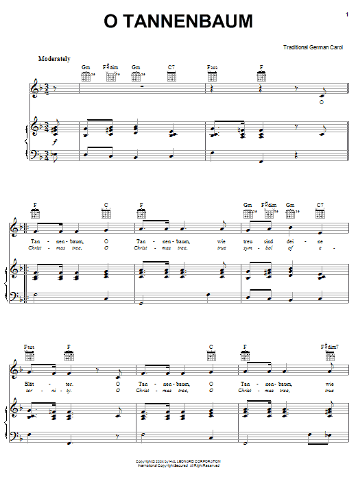 Download or print Traditional German Carol O Tannenbaum sheet music, chords and digital score arranged for Piano, Vocal & Guitar Chords (Right-Hand Melody). This Christmas score includes 2 page(s).