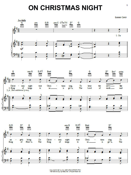 Download or print Sussex Carol On Christmas Night sheet music, chords and digital score arranged for Piano, Vocal & Guitar Chords (Right-Hand Melody). This Christmas score includes 2 page(s).