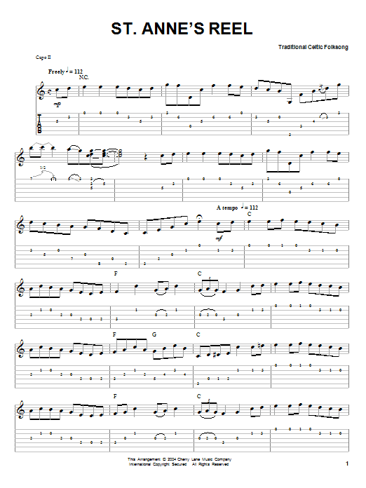 Download or print Traditional Celtic Folksong St. Anne's Reel sheet music, chords and digital score arranged for Solo Guitar. This Irish score includes 6 page(s).