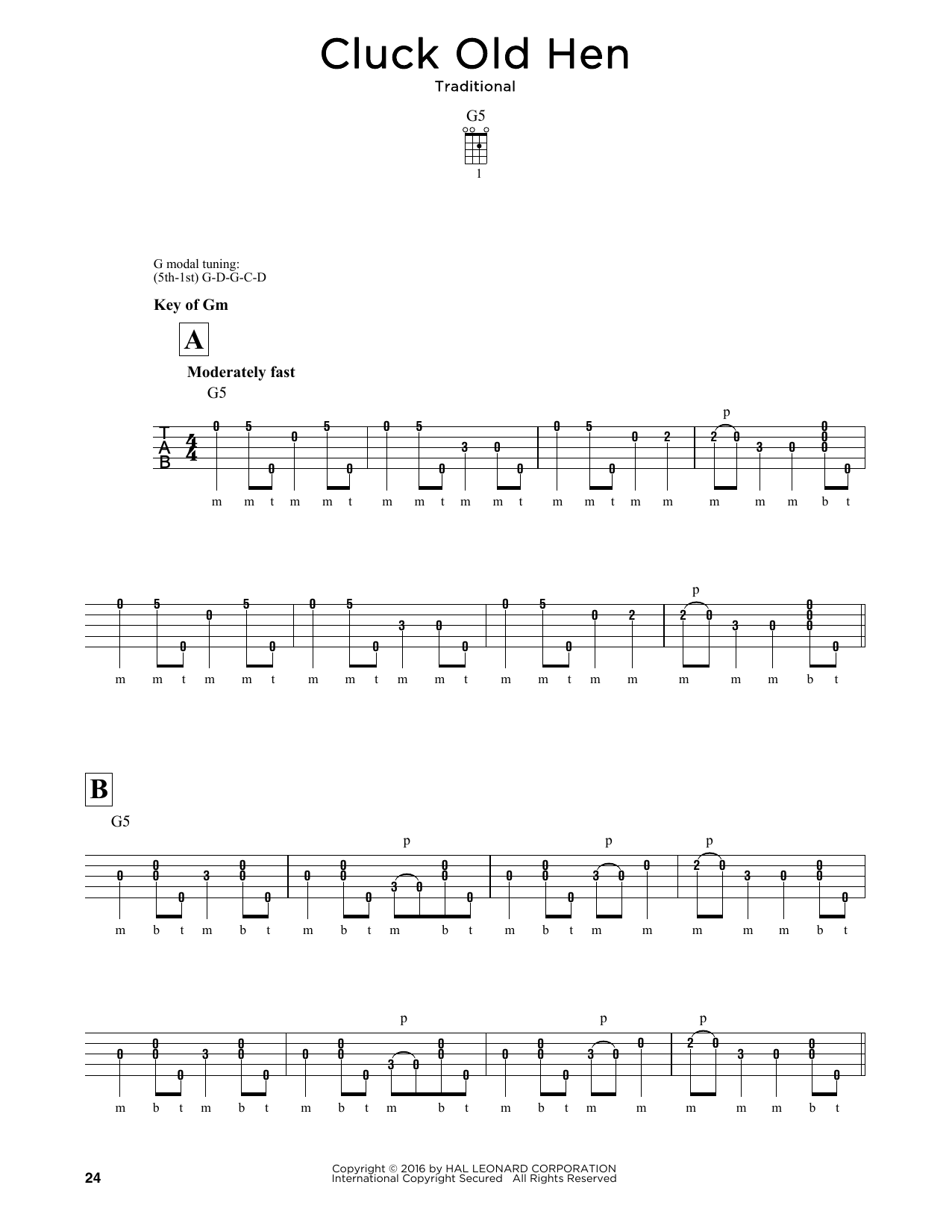 Download or print Traditional Cluck Old Hen sheet music, chords and digital score arranged for Banjo Tab. This Folk score includes 3 page(s).