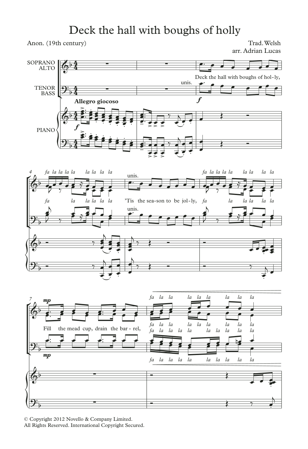 Download or print Traditional Deck The Halls With Boughs Of Holly (arr. Adrian Lucas) sheet music, chords and digital score arranged for SATB Choir. This Christmas score includes 6 page(s).
