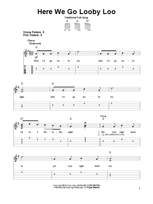 Download or print Traditional Folk Song Here We Go Looby Loo sheet music, chords and digital score arranged for Ukulele. This Children score includes 2 page(s).