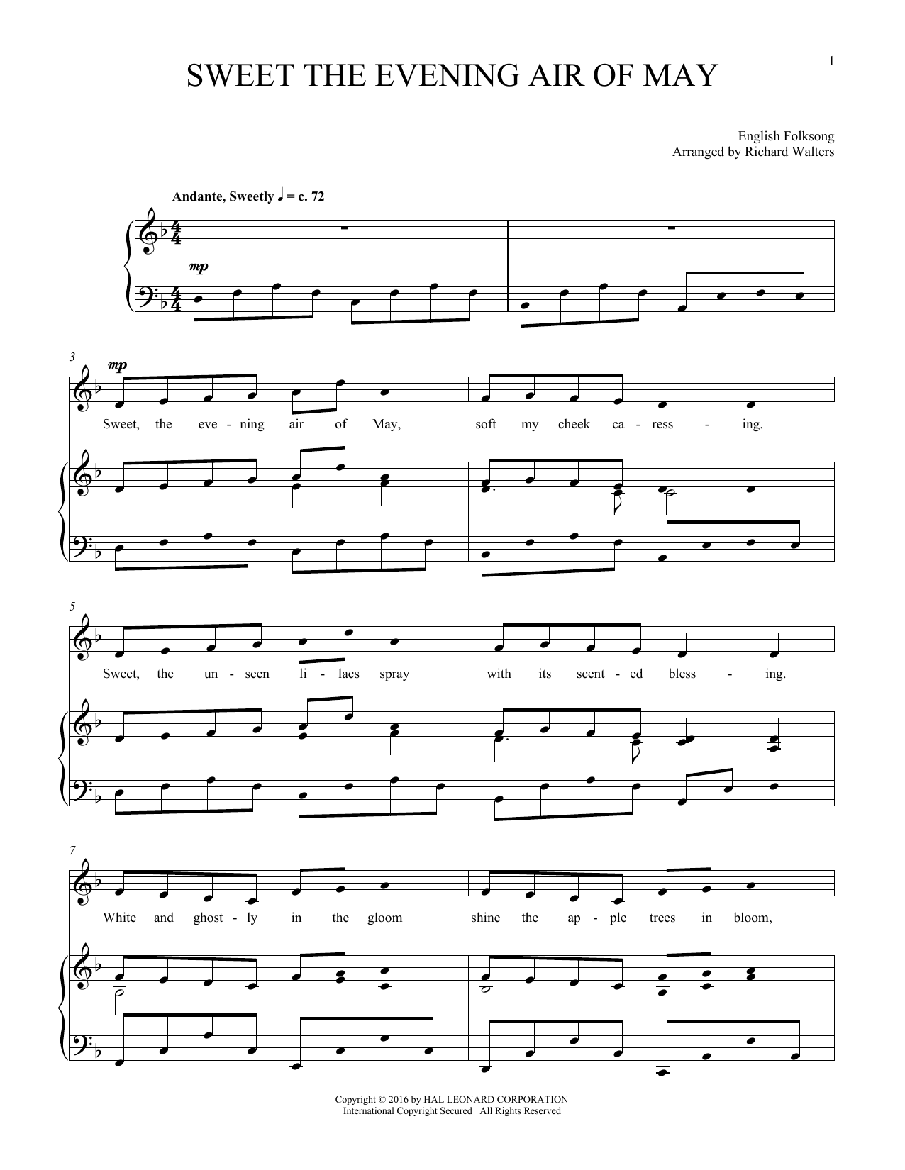 Download or print Folksong Sweet The Evening Air Of May sheet music, chords and digital score arranged for Piano & Vocal. This Folk score includes 2 page(s).