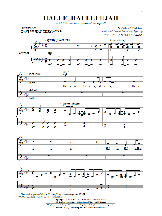Download or print Dave and Jean Perry Hallelu, Hallelujah! sheet music, chords and digital score arranged for SATB Choir. This Festival score includes 19 page(s).
