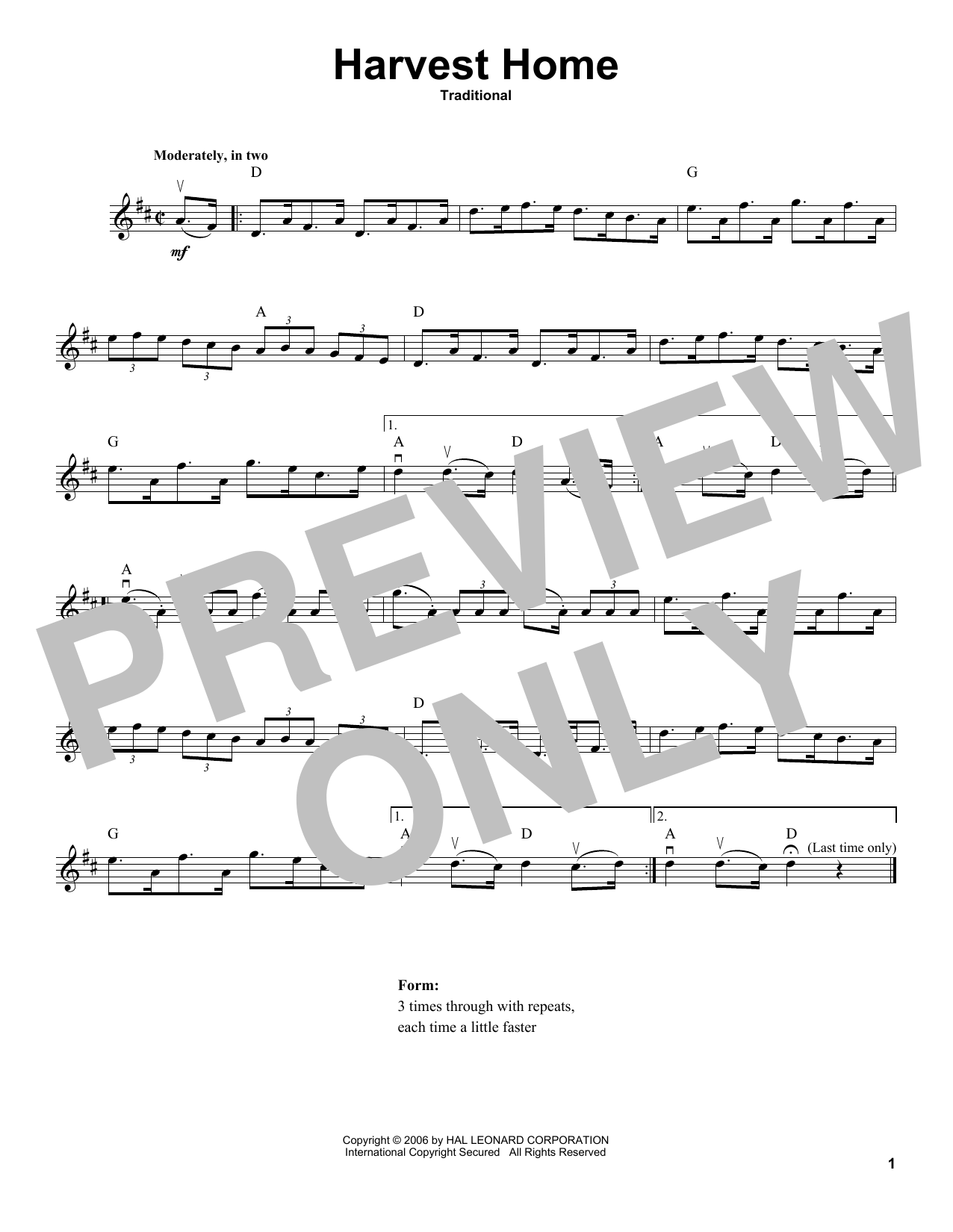 Download or print Traditional Harvest Home sheet music, chords and digital score arranged for Violin Solo. This Celtic score includes 1 page(s).