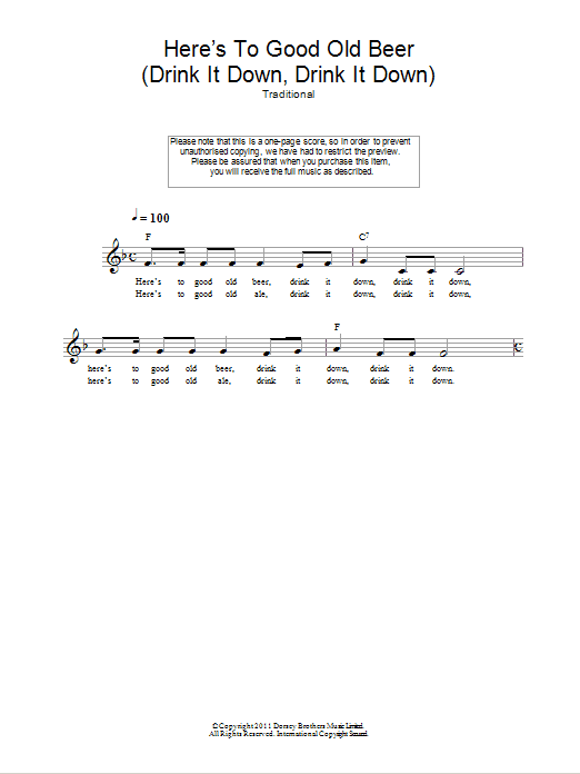 Quick facts Here's To Good Old Beer (Drink It Down, Drink It Down) about digital sheet music