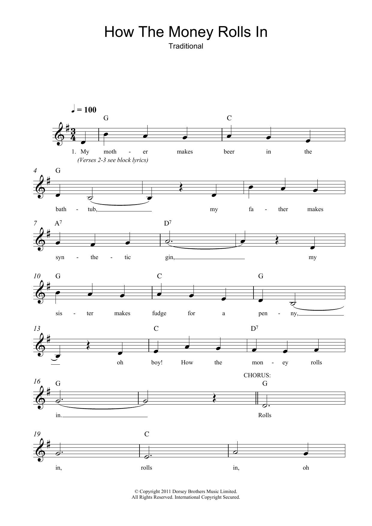 Download or print Traditional How The Money Rolls In sheet music, chords and digital score arranged for Lead Sheet / Fake Book. This Traditional score includes 2 page(s).