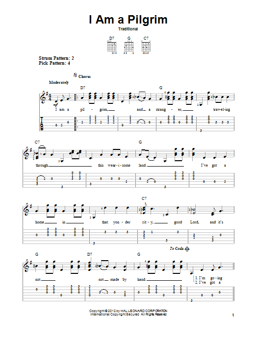 Download or print Traditional I Am A Pilgrim sheet music, chords and digital score arranged for Easy Guitar Tab. This Country score includes 2 page(s).