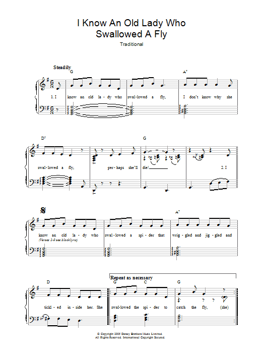 Quick facts I Know An Old Lady Who Swallowed A Fly about digital sheet music