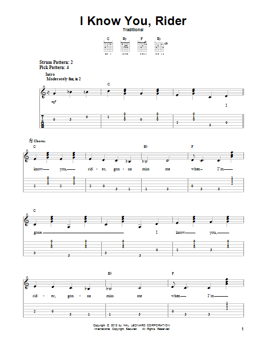 Download or print Traditional I Know You, Rider sheet music, chords and digital score arranged for Easy Guitar Tab. This Country score includes 4 page(s).
